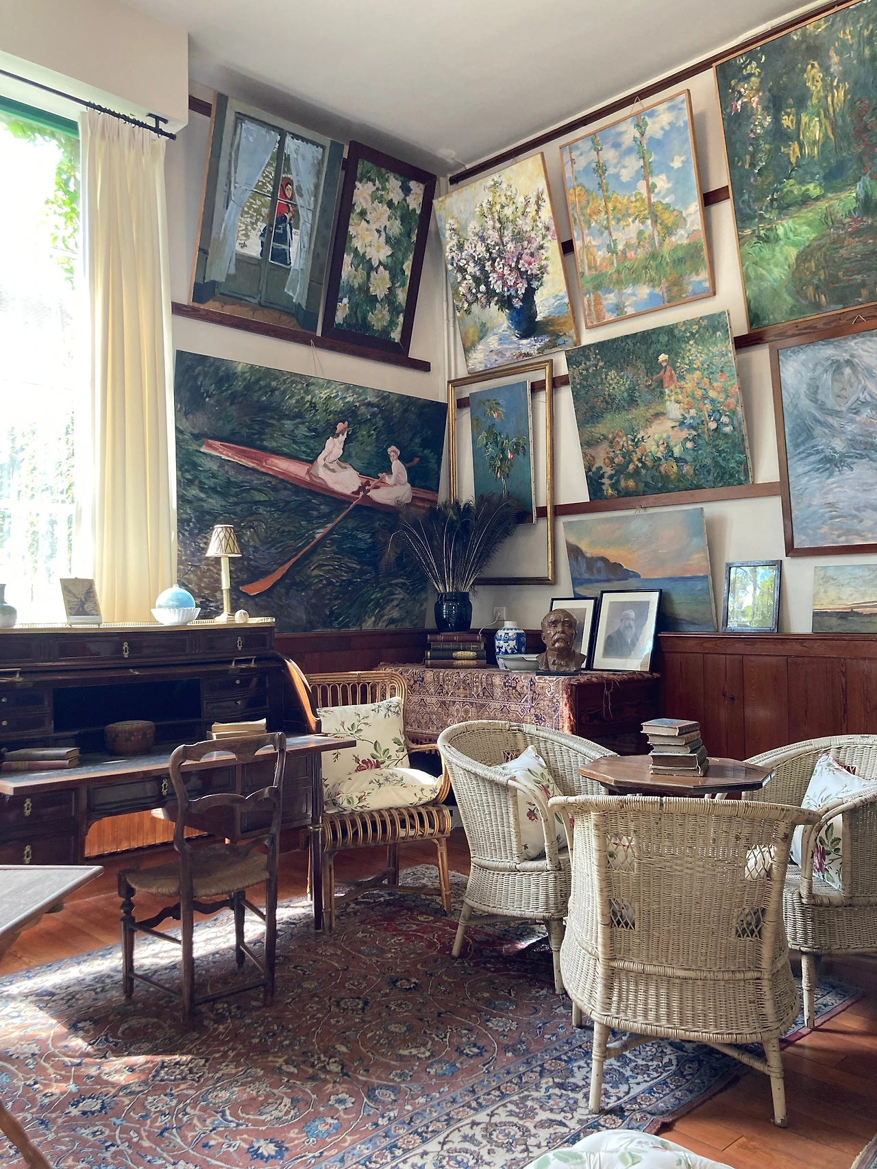 집안에 들어서니 그가 평소에 습작했던 작품들이 전시되어 있고, 모네의 그림 중에서 많이 알려진 '파라솔을 든 여인'을 그린 작품들이 여러 점 걸려 있었다.