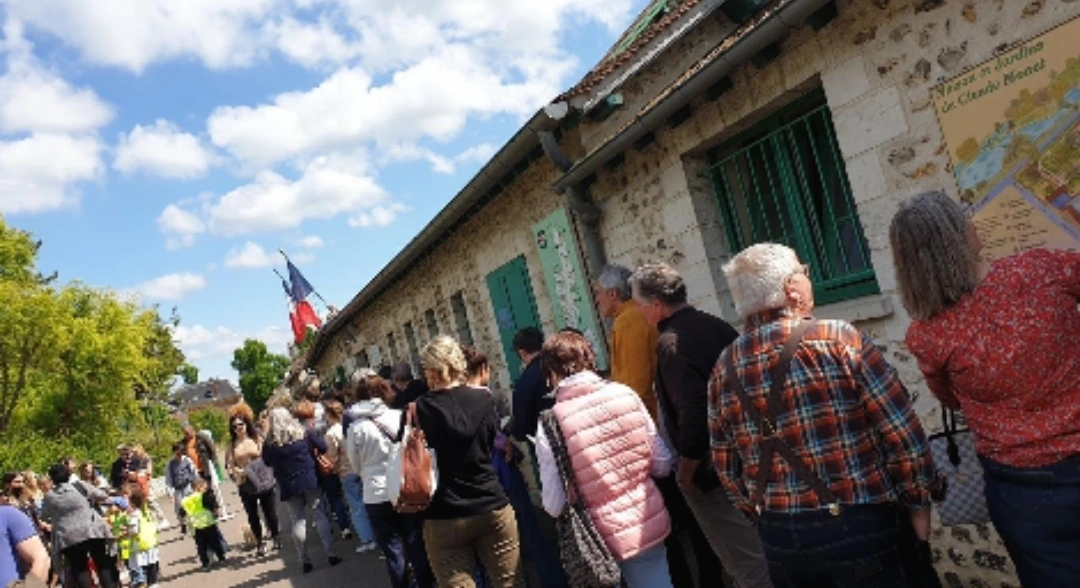 모네의 정원 인근에 위치한 도로변 주차장에 차를 세우고 티켓팅을 하고서 각국에서 온 관광객 긴 줄의 대열에 합류하였다.