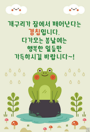 오늘 같은 경칩일에는 카톡으로 개구리를 넣어 그린 그림카드로 안부를 묻기도 한다.