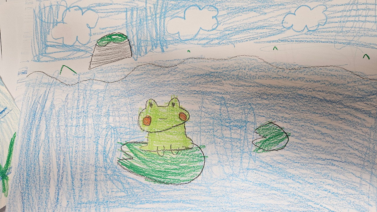 경칩이다!라고 알려주는 개구리의 귀여운 모습을 개나리반 아이들에게 그림을 그려서 원장선생님께 선물로 달라고 요청하였다.