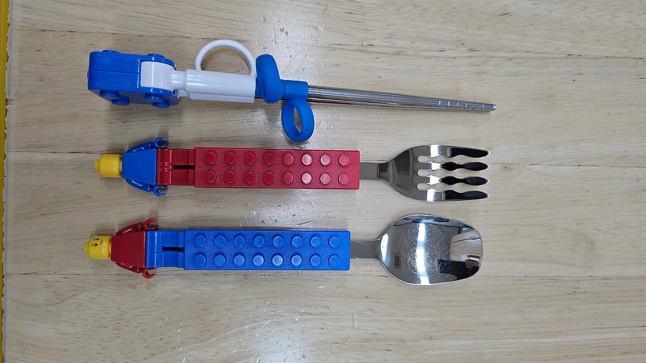 아이들이 좋아하는 캐릭터가 그려진 레고 숟가락과 포크였다.