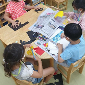 아이들과 흔히 할 수 있는 콜라주 기법을 활용한 그림놀이에서 아이들의 표정은 예술가에게 볼 수 있는 표현의 환희가 느껴진다. 그 순간 아이들은 예술가가 되어 있었다.
