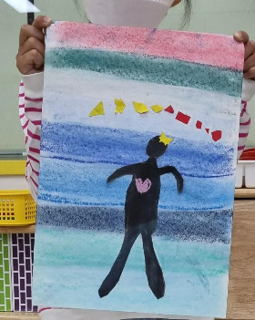 “자, 그러면 그림 속 이카루스를 보면서 앙리 마티스가 했던 것처럼 색종이를 오려서 붙여보니 기분이 어때?”라고 물었다.