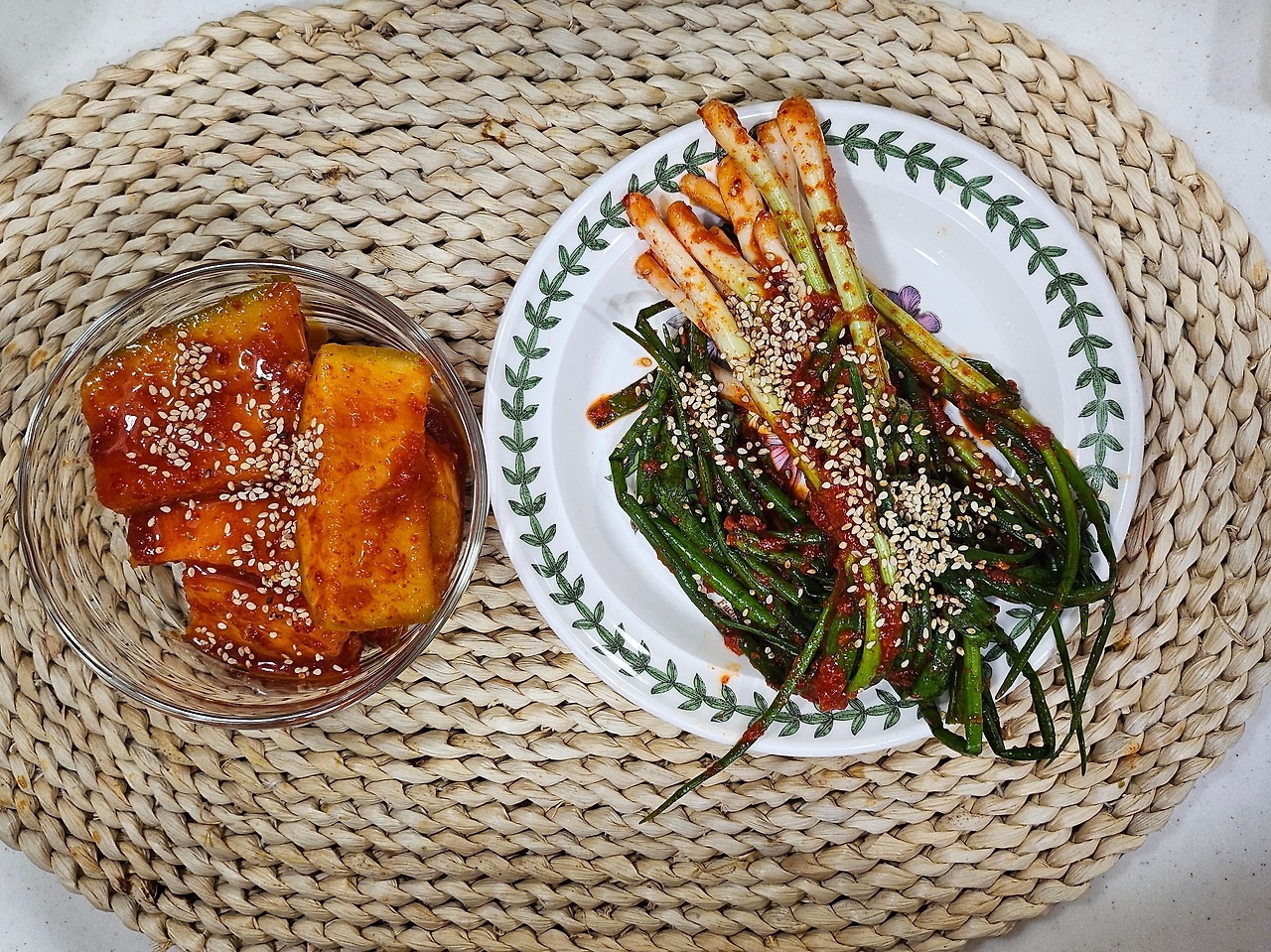 집에 있는 김치통을 꺼내어 옮겨 담으려고 섞박지 한 칸을 덜어내니 그다음에는 파김치가 한 칸을 차지하고 있었다.