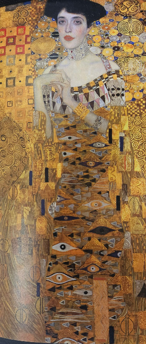 '아델레 블로 후 바우어 부인의 초상'에서 황금을 욕망의 색으로 표현하며 클림트가 이 여인을 좋아하는 마음을 그림 안에 고스란히 녹여냈다고 해도 과언이 아니다.