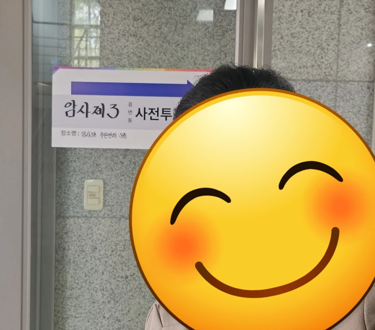 주민센터에서 나오면서 연예인들이 인증숏을 남기듯이 나도 셀카를 찍어서 인증숏을 남겨보았다.