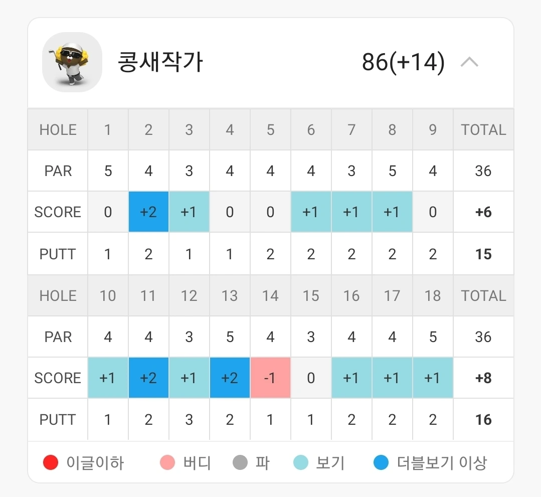 전화받다가 실수한 홀을 제외하고는 거의 표준으로 쳤다.