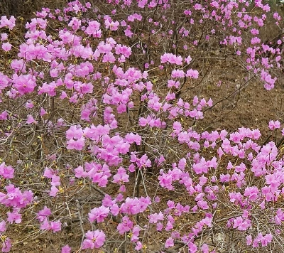 황량한 산자락에도 비단 폭을 펼쳐놓은 듯한 은은한 연분홍빛 꽃물결이 장관을 이룬다.