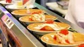 요리사들이 초밥을 만들어서 접시에 담아 컨베이어 벨트 위에 올려놓으면 손님들이 먹고 싶은 접시를 가져다 먹는다.