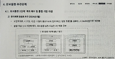 교육청에 잘 이관될 수 있도록 유보통합팀에서 7월 1일 자로 추진단을 만들 것이며, 현재는 유아교육과가 과의 형태인데 과 형태의 추진단이 3팀으로 12명으로 구성이 된다고 한다.