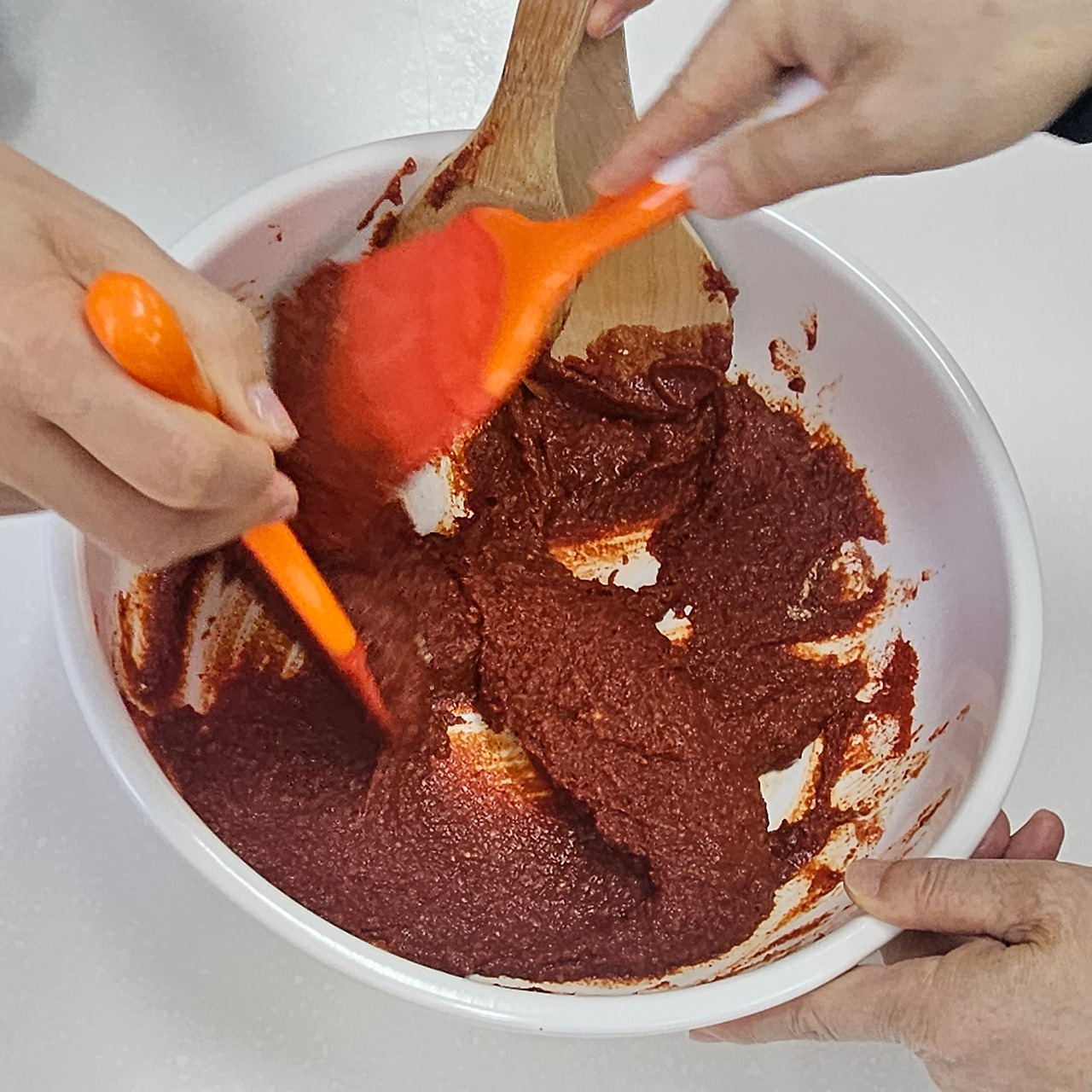 여기에 고춧가루, 물, 간장 등을 섞어 저어주고, 간을 맞출 때는 3년 이상 묵은 간장을 썼다.
