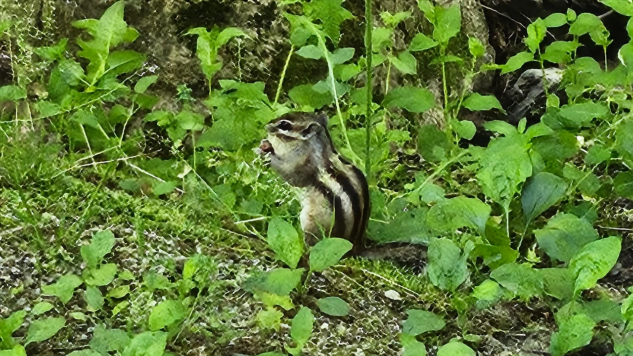 토종 다람쥐들이 관광객이 뿌려 준 땅콩을 집어 먹느라 사람들 틈에서도 도망가지 않는다.