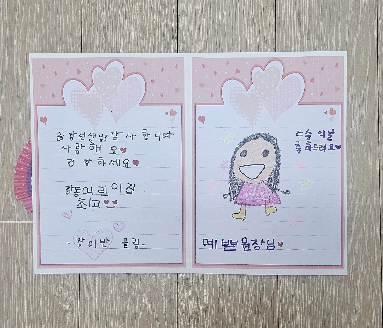 '원장님, 우리들이 안전하고 즐겁게 지낼 수 있게 해 주셔서 감사합니다. 사랑합니다.'