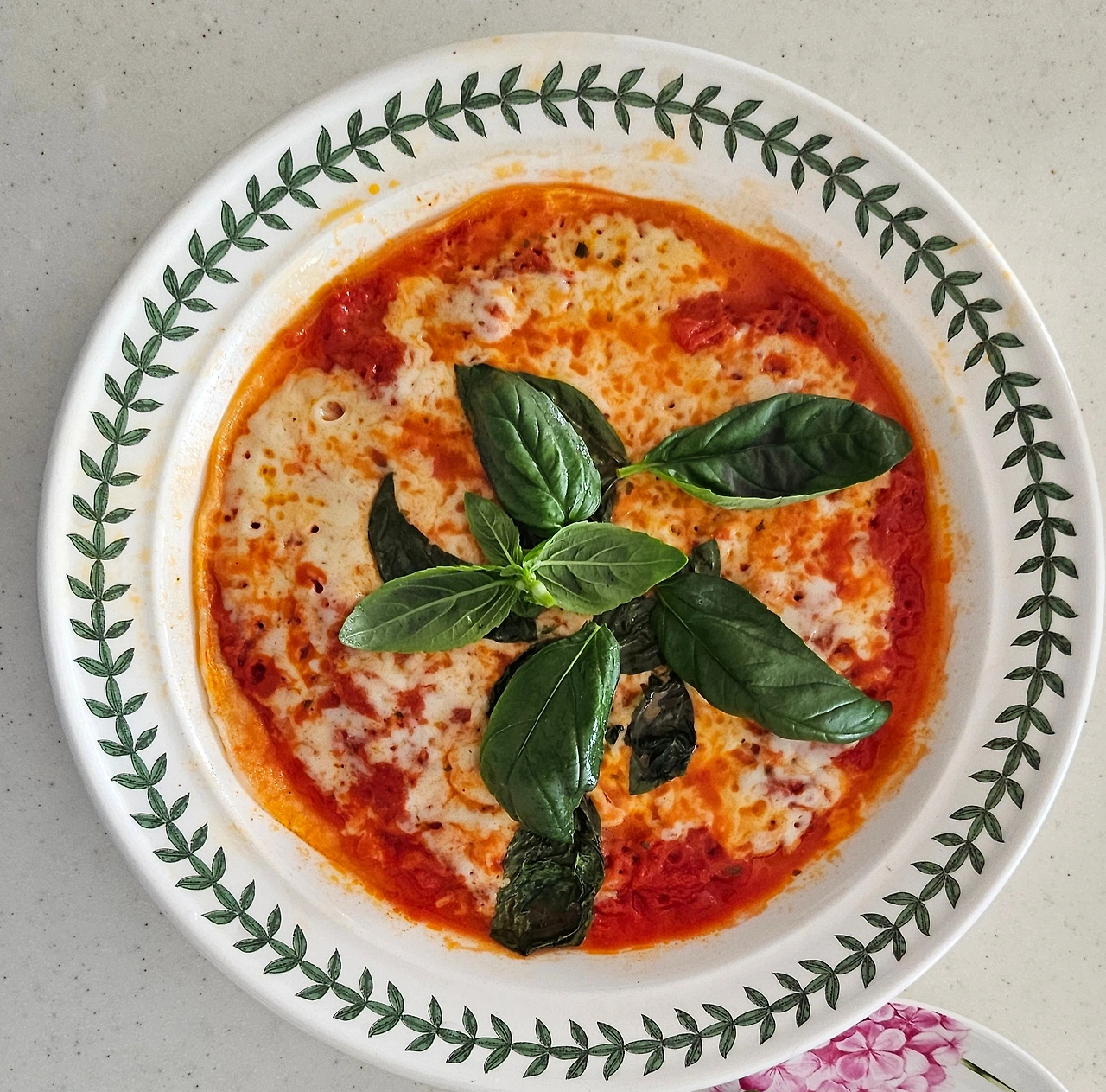 향긋한 바질 향과 쫀득한 토르티야, 쫄깃한 치즈, 달콤 새콤 토마토소스가 어우러져 맛의 교향곡이 입안 가득히 울려 퍼진다.