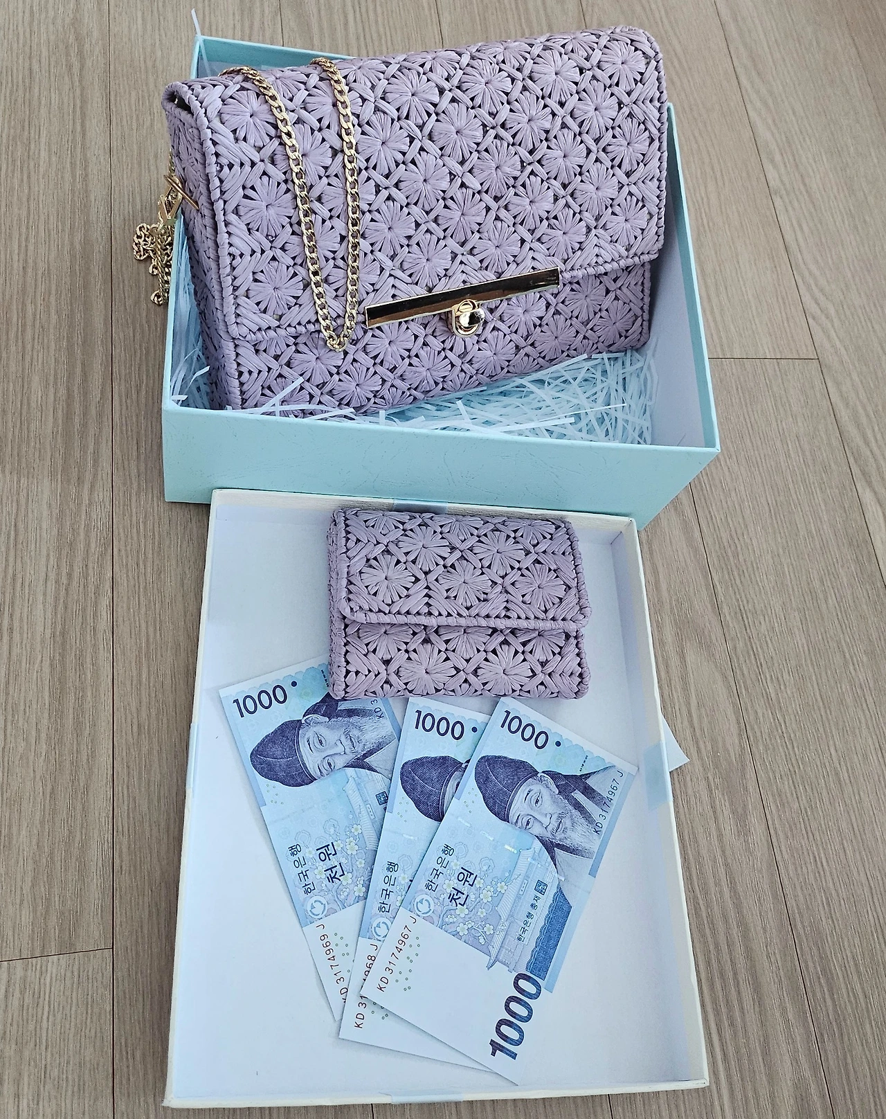 핸드메이드 핸드백 안에는 빳빳한 천 원짜리 지폐도 들어있었다.