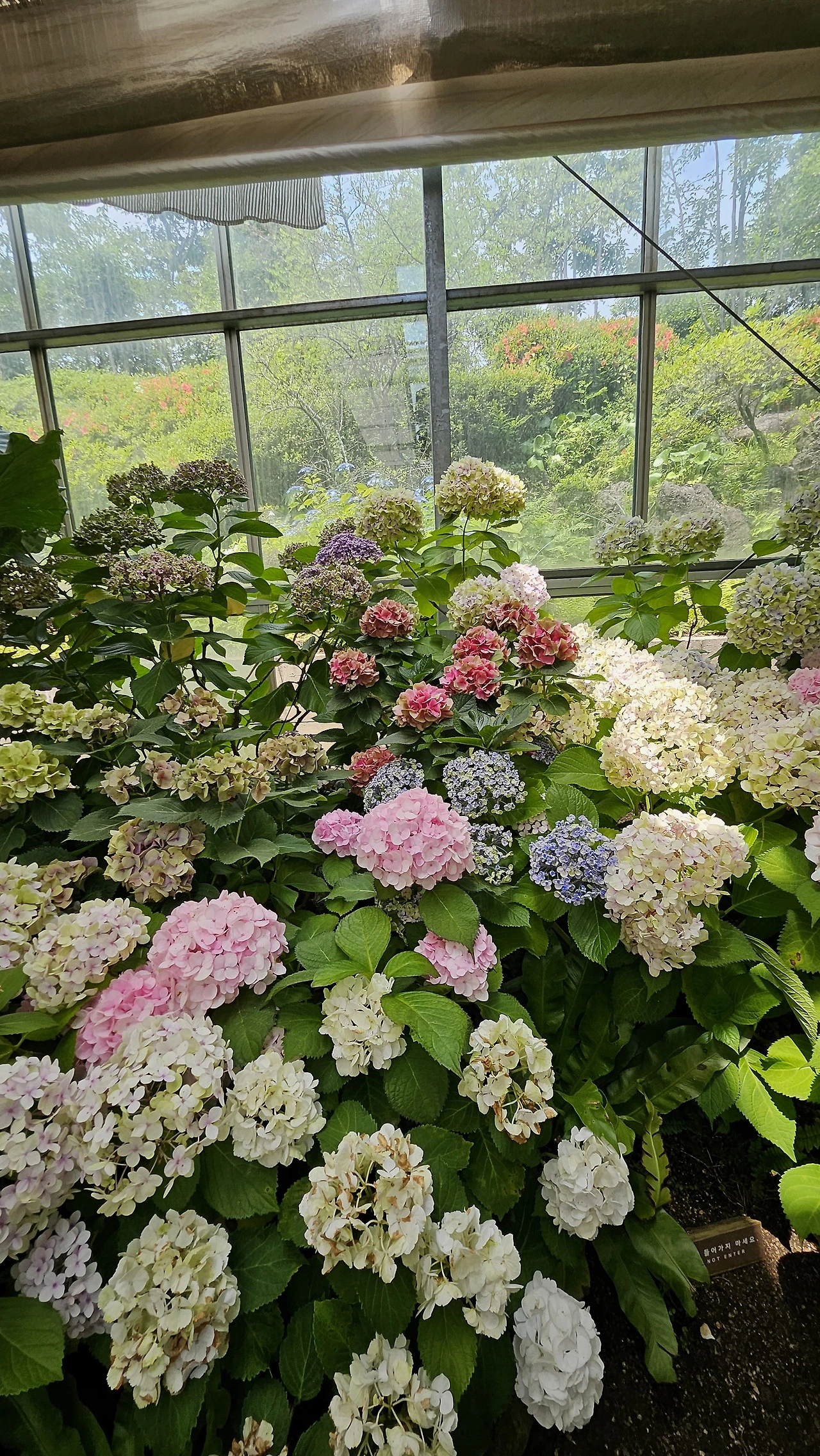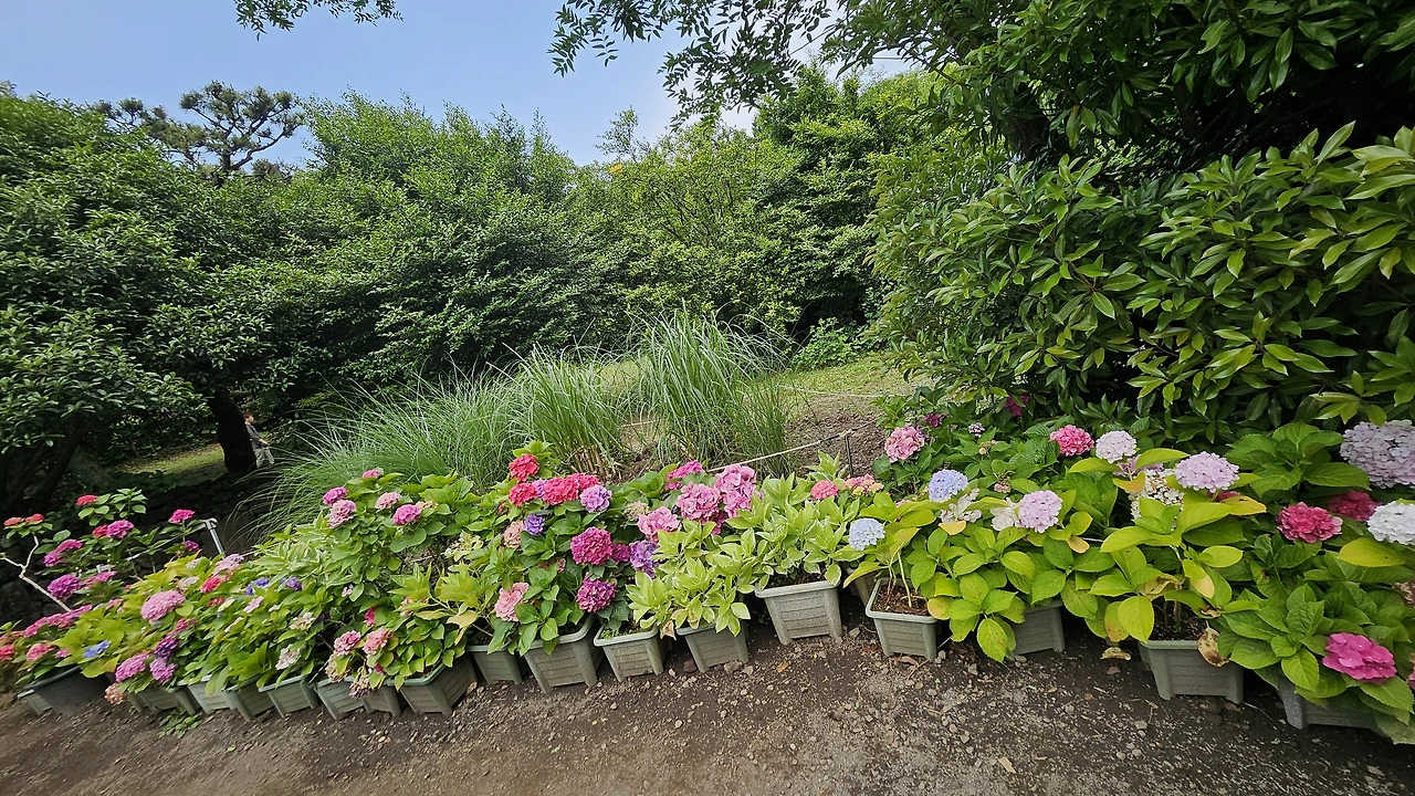 대신 수국이 총천연색으로 만발해 관람객을 기다렸다.