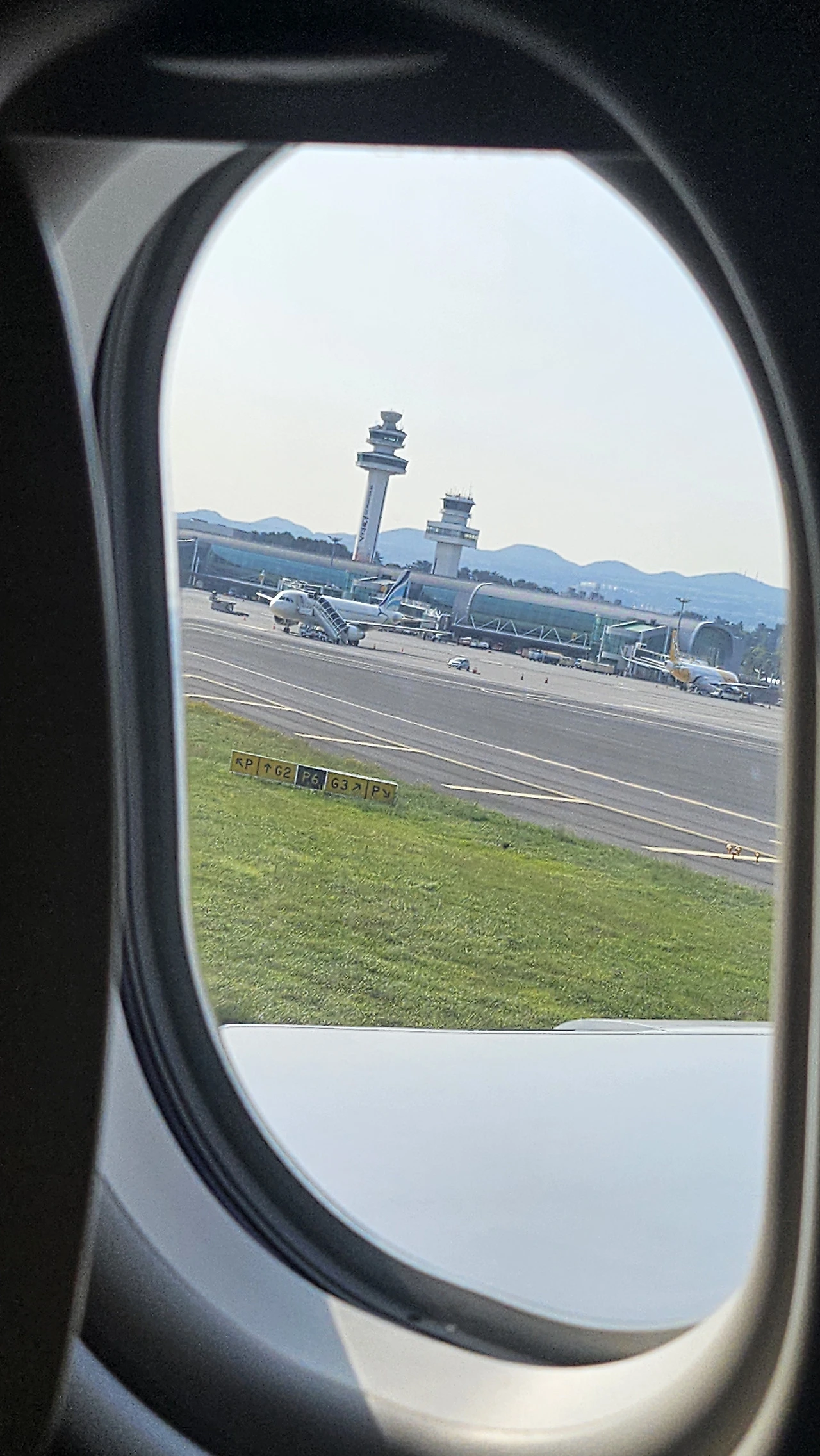 7시 비행기 이륙, 7시 55분 제주도에 착륙했다.