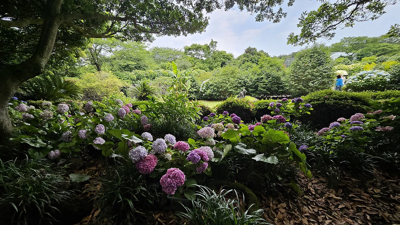 수국이 활짝 핀 공원.