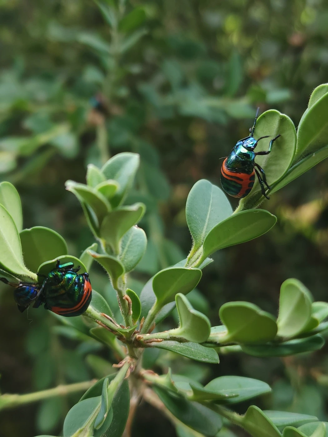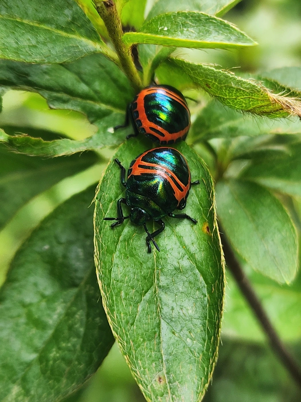 러브버그처럼 생겼는데 빛깔이 아주 고왔다.