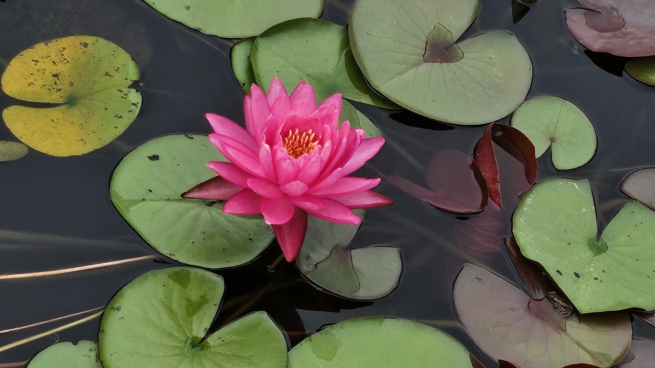 연꽃처럼 수면 위로 잎이 높이 솟아 있지 않고, 꽃들도 수면과 비슷한 높이에서 피어났다.