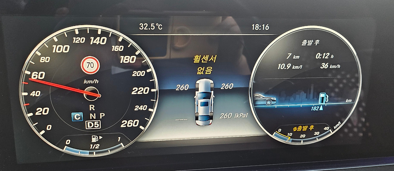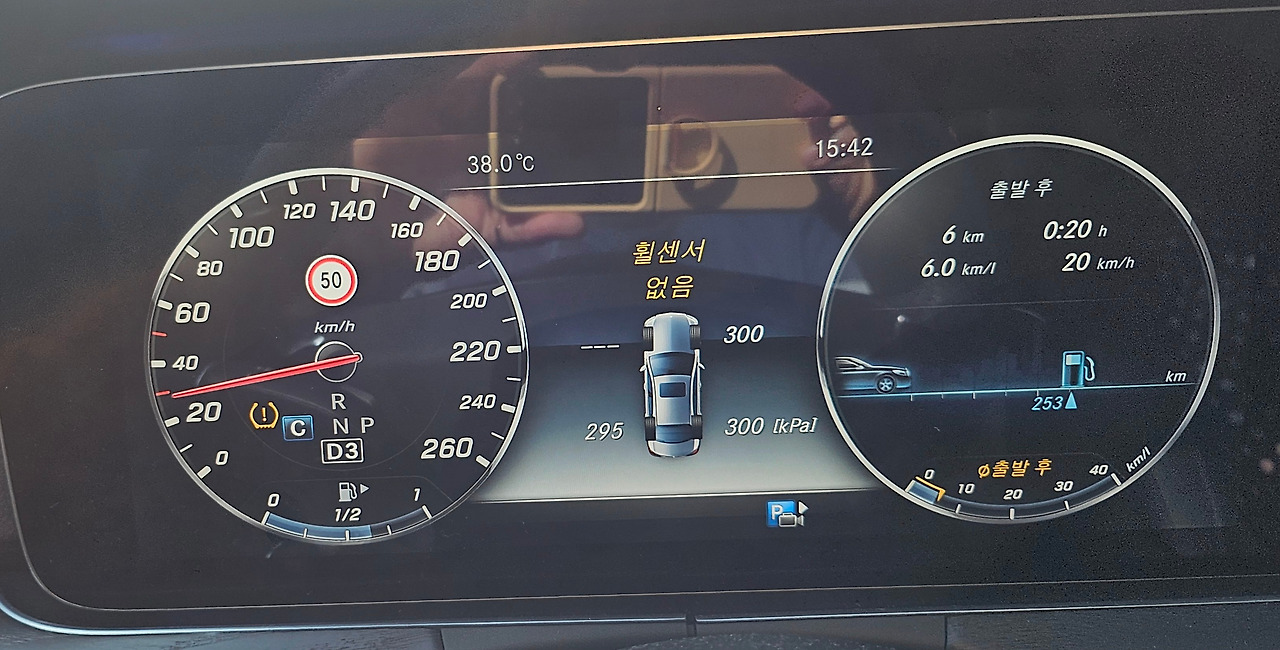 운전을 하는데 자동차 계기판에 뒷바퀴에 숫자가 사라지고 '휠센서 없음'과 느낌표가 뜬다.