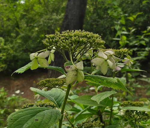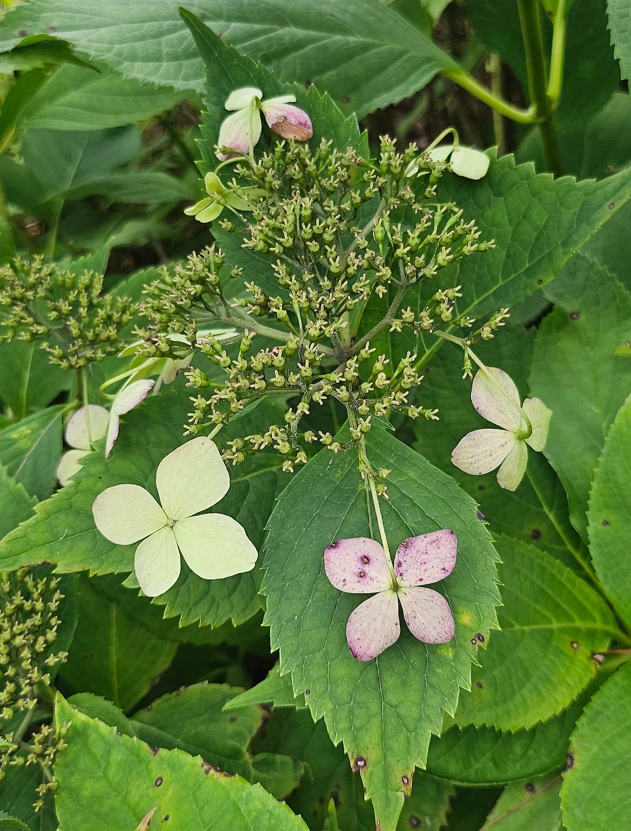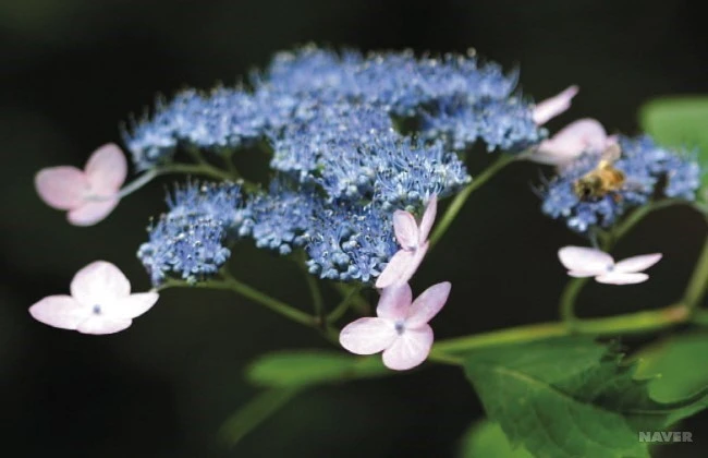 산수국은 가짜꽃이 먼저 다 피고 나면 진짜꽃이 피기 시작한다.