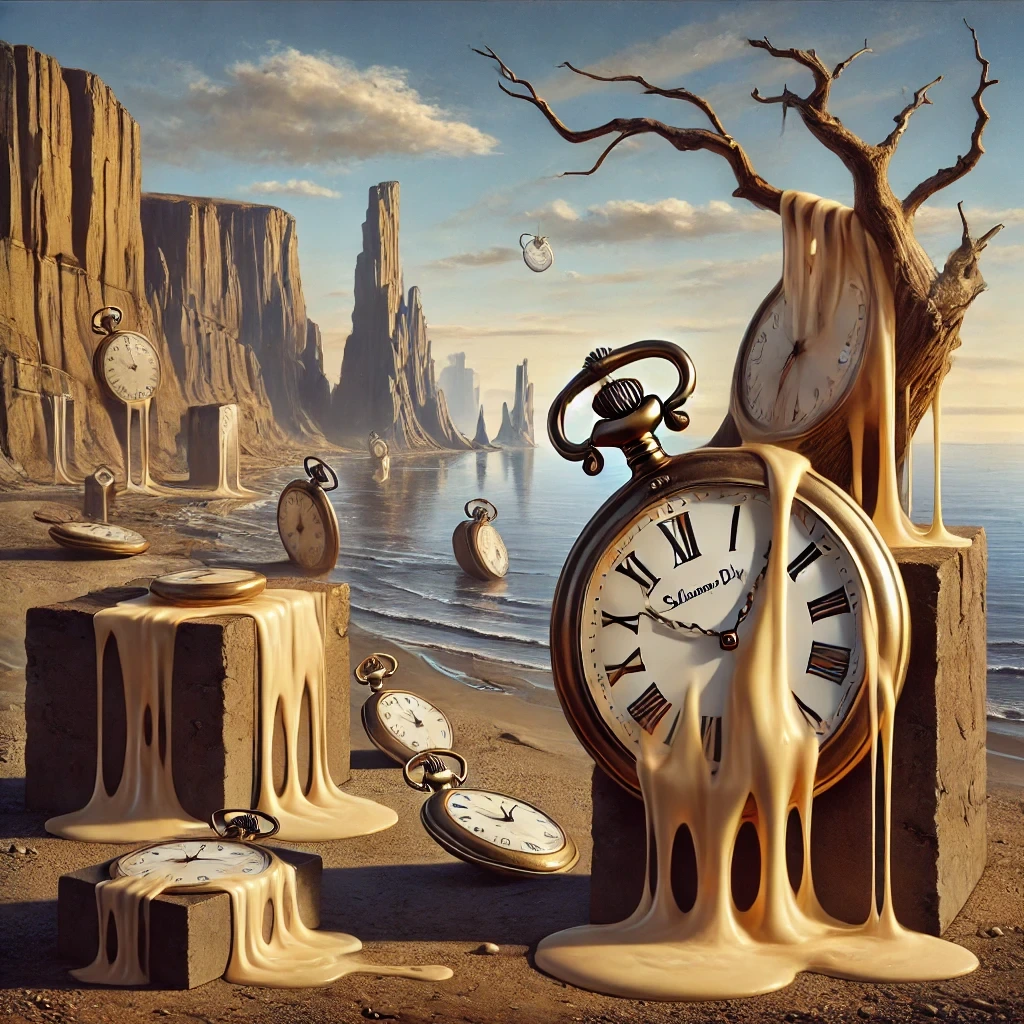 그의 작품 중 유명한 '녹아내리는 시계'는 시간의 무의미함과 현실의 왜곡을 상징하는 무의식 속에서 시간의 개념이 유동적임을 보여주었다.