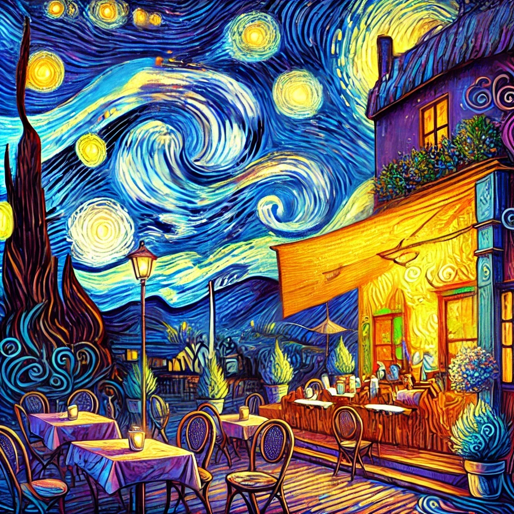 '밤의 카페 테라스'에서 고흐는 노란색을 통해 독특한 색채 감각을 실험하며, 밤의 어두운 풍경에서 밝고 따뜻한 색을 대담하게 사용하며 혁신적인 예술적 접근을 보여준 하나의 예시였다.