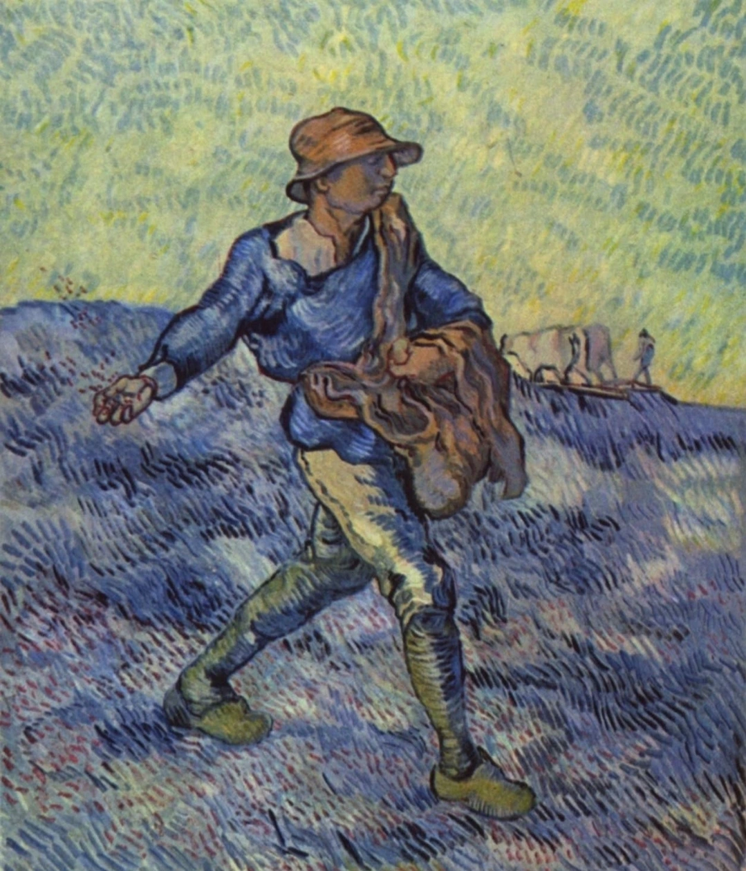 고흐는 씨앗을 뿌리는 행위는 새 생명을 시작하는 원초적이고 상징적인 행위이며, 농부가 들판에 씨를 뿌리는 모습을 통해 노동의 아름다움과 존엄성이었다.