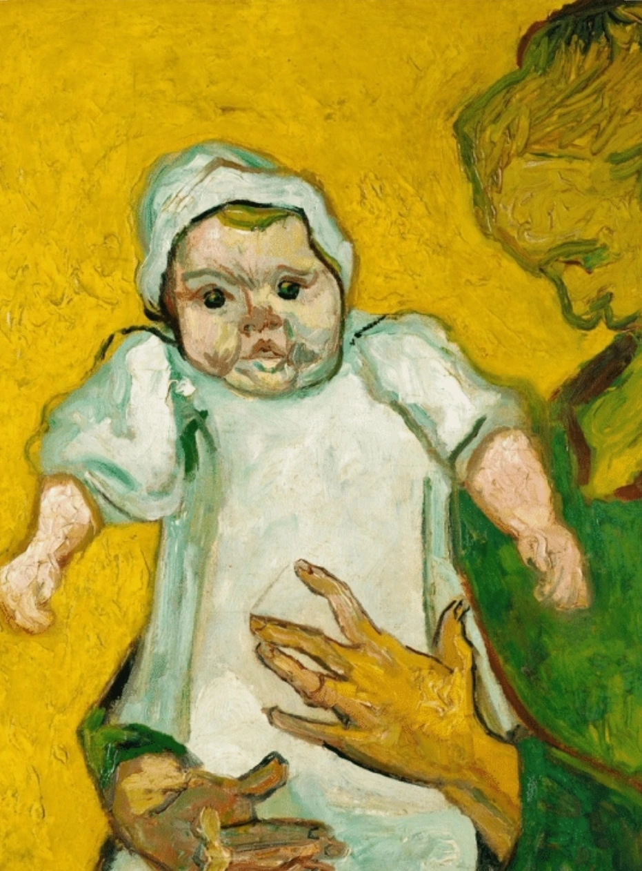 고흐는 룰랭 부인이 아기를 부드럽게 안고 있는 모습을 통해 따뜻한 모성애를 잘 묘사하였다.