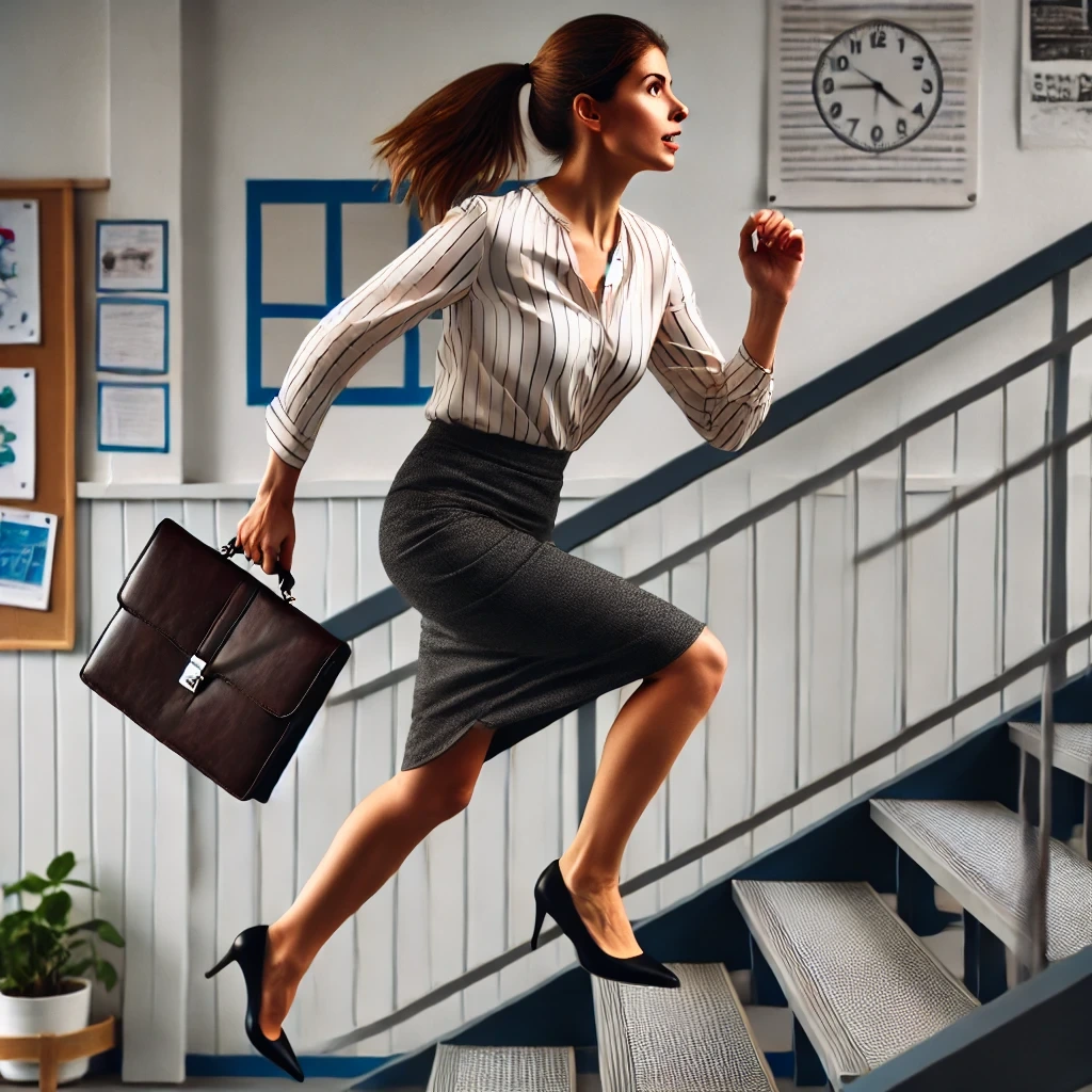 계단을 오르던 중, 등 뒤에서 누군가가 "내일은 일요일이니 푹 쉴 수 있어요."라고 속삭이는 듯한 기분이 들었다.