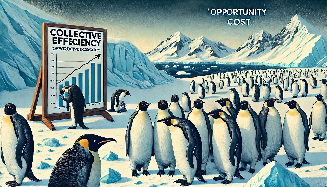 황제펭귄의 허들링은 마치 공공재를 나누는 인간 사회의 모습과도 같다.