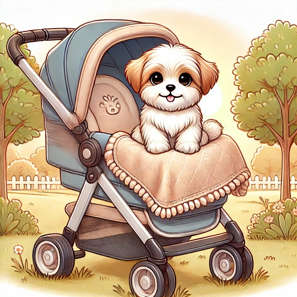 유모차가 가까이 다가오는데 유모차에 앉아있는 주인공은 바로 예쁜 강아지였다.