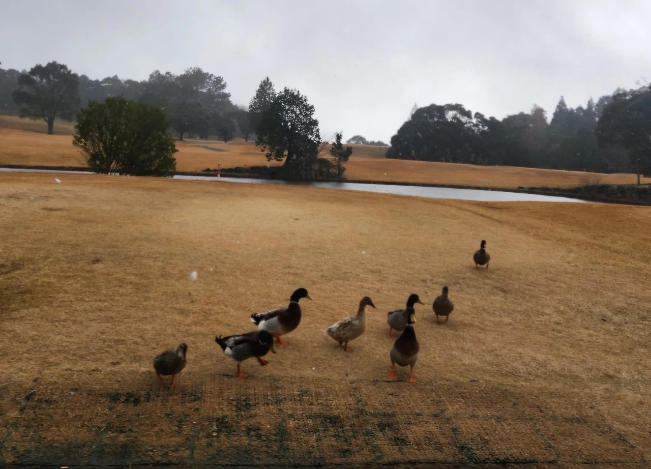 사츠마 골프장에서 플레이 도중 갑자기 강한 바람이 불면서 비, 눈, 진눈깨비가 쏟아지고, 날은 어두워지고 종잡을 수가 없었다.