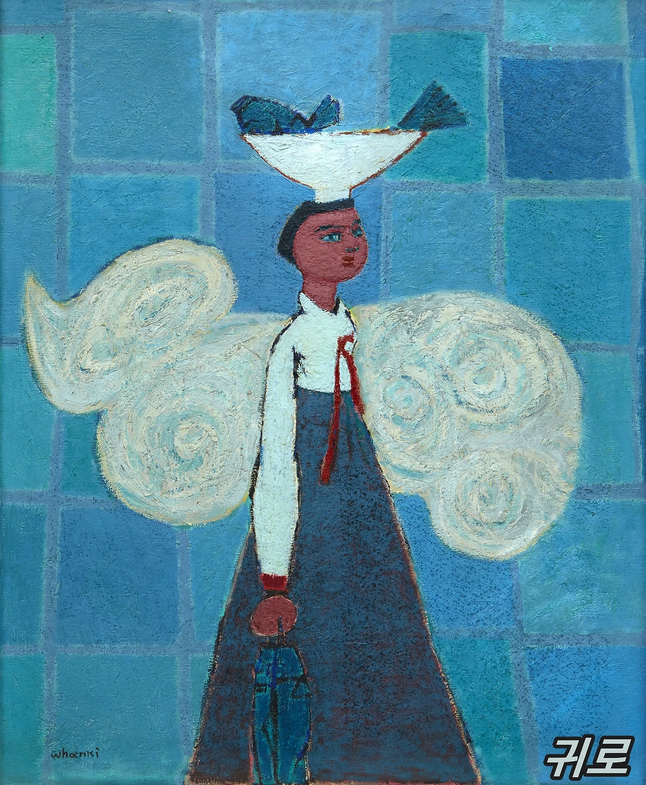 김환기 화백의 '귀로'라는 제목의 작품은 그의 대표작 중 하나로, 고향으로 돌아가는 길을 주제로 하였다고 한다.