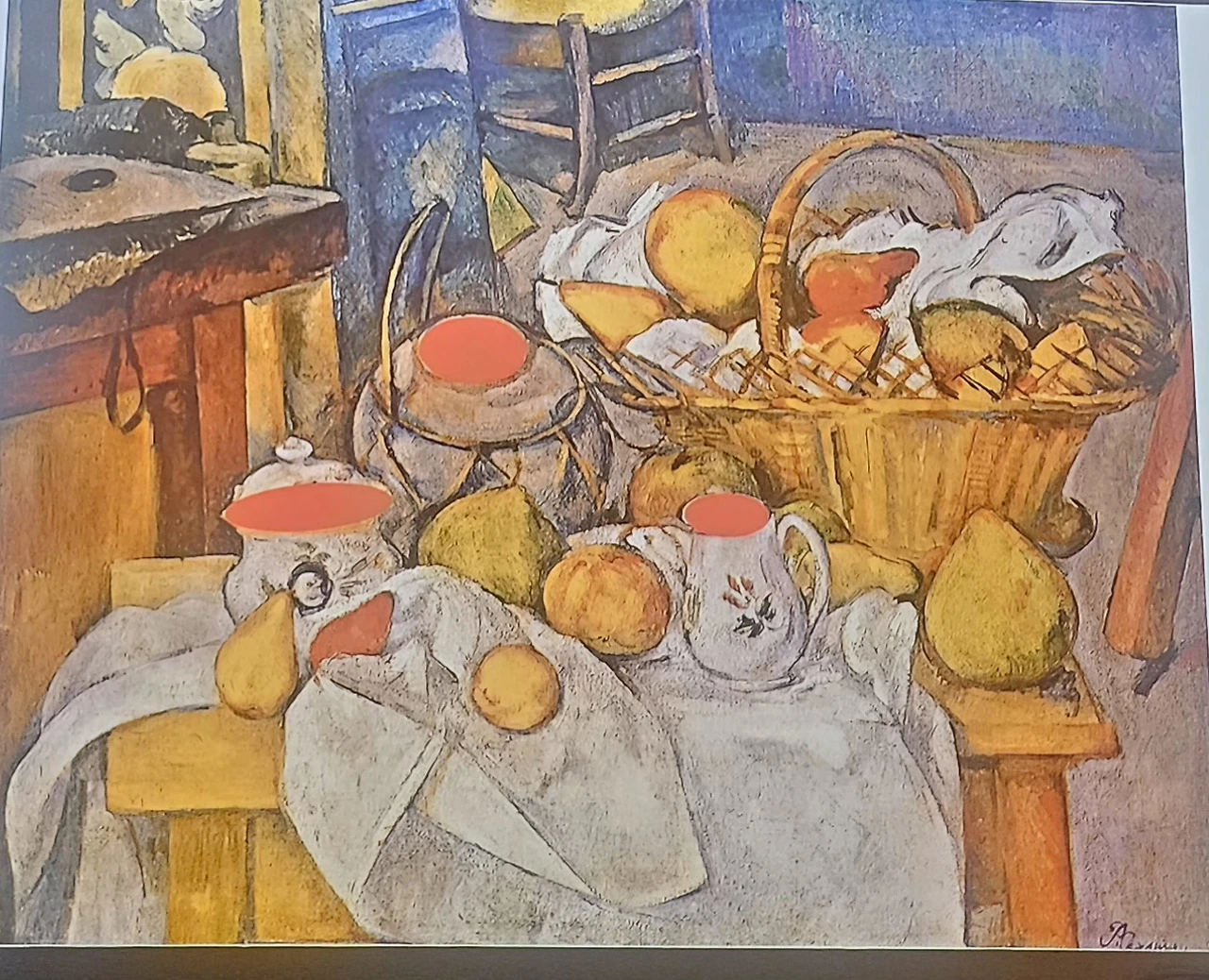 세잔의 대표작인 '사과와 오렌지가 있는 정물'을 보면 사과와 오렌지가 단순한 형태로 배열되어 있고, 사물들이 기하학적으로 배치된듯한 인상을 주고 있다.