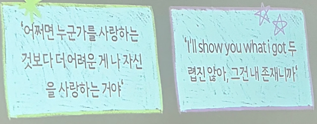 학생들은 발표가 끝난 후에도 'Love Myself' 가사를 찾아보며 서로의 생각을 나눴고, 어떤 학생들은 자신이 좋아하는 음악을 심리학적으로 해석해보고 싶다는 생각을 갖게 되었다.