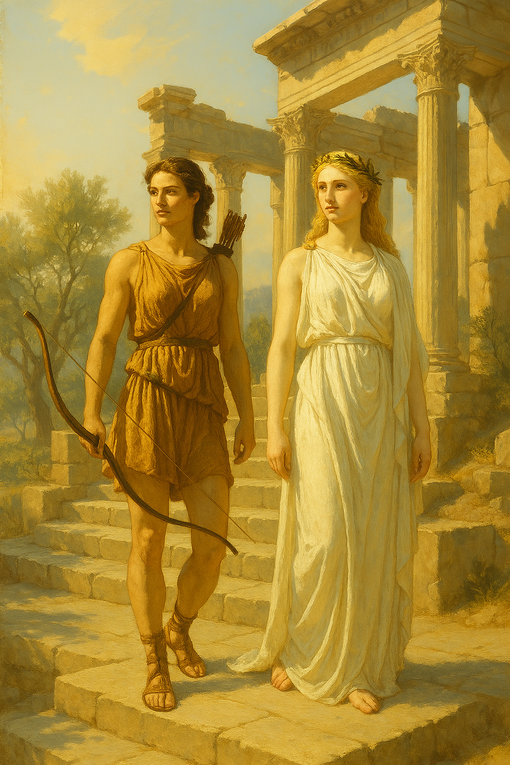 이 두 인물의 나체 초상화를 같은 예술가에 의해 신전 벽에 그렸는데, 그림은 벽에 프레스코(fresco) 벽화 형식으로 그려졌으며, 두 인물의 뛰어난 아름다움을 묘사한 것으로 알려져 있다.
