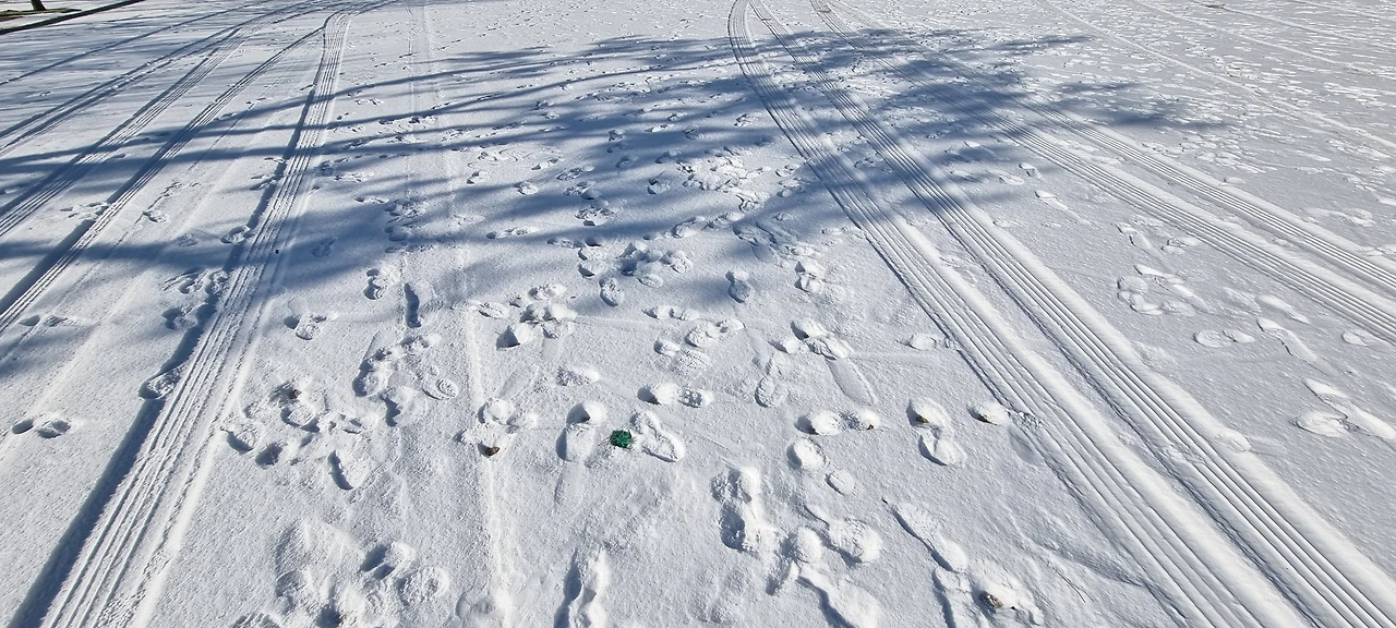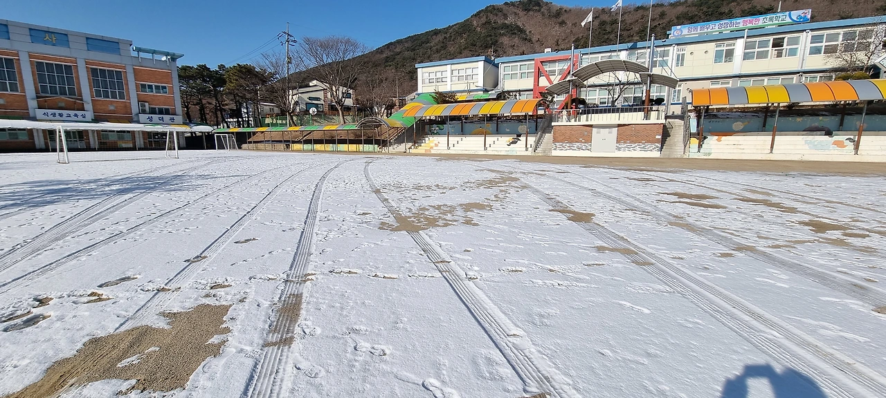지난 설연휴에 내린 눈이 아직 안 녹았다.