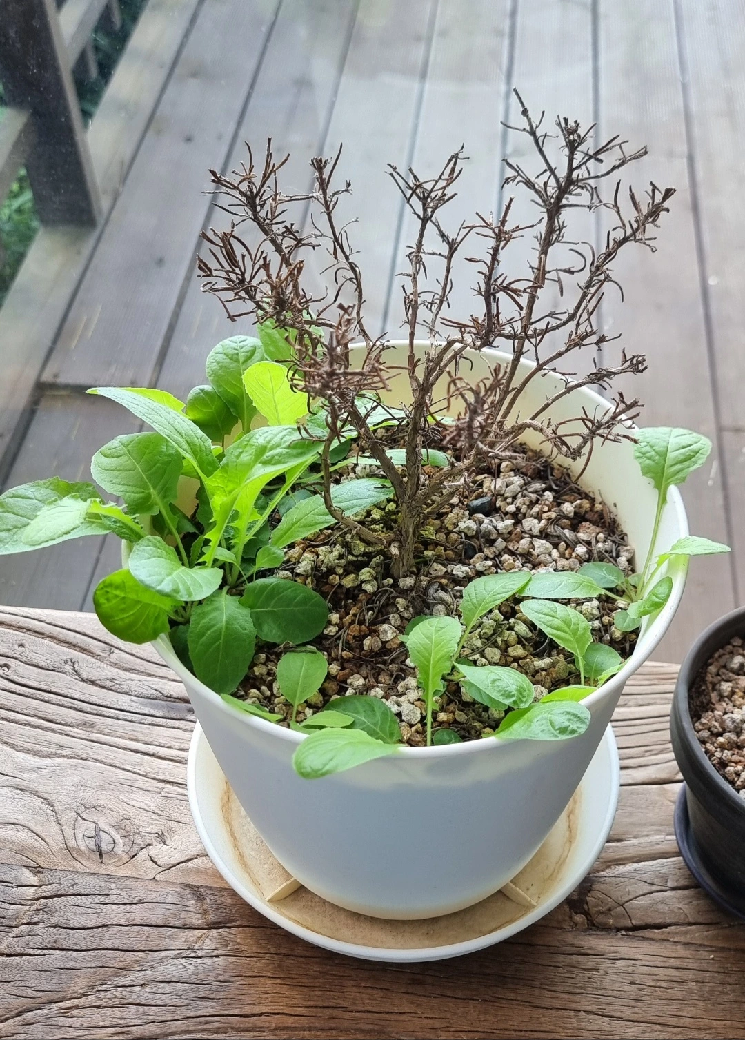 작년 봄에 사들였고 그해 겨울도 건강하게 잘 버텼는데 올여름 허망하게 죽어버린 로즈마리 화분.