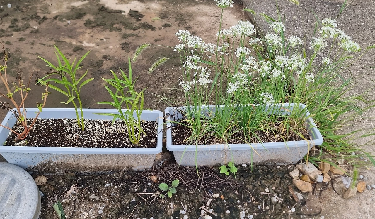은방울꽃은 여름 오기 전에 다 시들고 잎도 노래졌는데 그 화분에 손님이 찾아왔다. 내가 뿌린 씨가 아니라서 이름도 모르겠지만 잡초라고 부르기엔 너무 근사하다.
