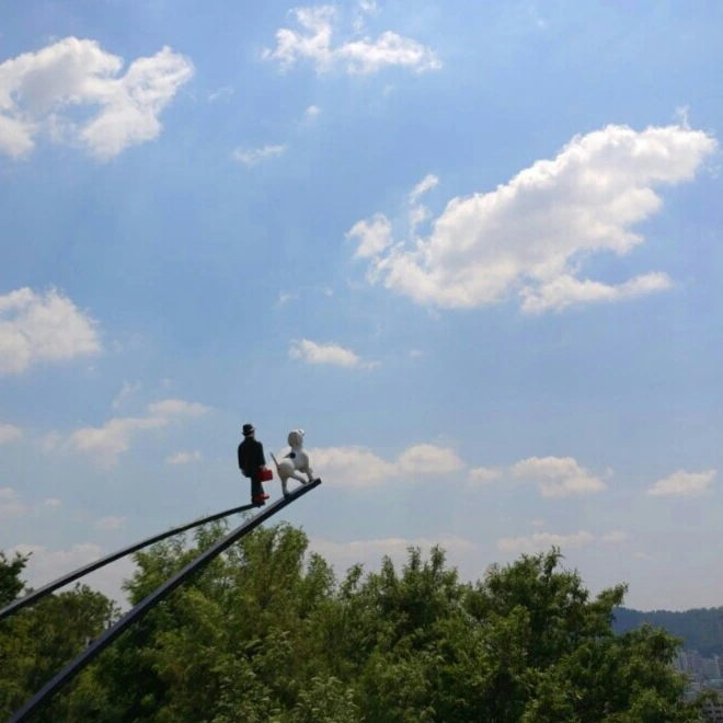 다시 개를 안고 계단을 오르는 나로 돌아와서, 나는 이 위에 뭐가 있을지 알면서도 여길 죽어라 올라가고 있어요. 마지막 계단을 밟고 서면 가까운 화단이 가장 먼저 보이겠죠. 여느 공원들과 다를 바 없이 벤치도 있을 테고, 얇은 모래 바닥을 밟고 앞으로 앞으로 걷는 사람들도 몇 있겠죠. 저 건너에서는 낮은 성곽이 이어지고 그 너머로 종로를 제법 멀리까지 전망할 수 있을 거예요. 성곽 앞에 서면 서늘한 바람이 불어오겠죠. 나는 이걸 다 알면서도 땀을 내며 계단을 오르고 있어요. 올라오기로 결심한 마음을 후회하면서도 오르고 있어요. 왔던 길을 뒤돌아 내려가야 함을 알면서도 오르고 있고요. 높은 곳에서 개와 걷고 싶으니까, 다시 서울을 내려다보고 싶으니까.