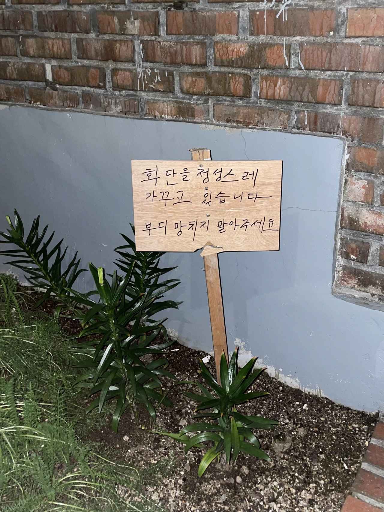 ‘화단을 정성스레 가꾸고 있습니다. 부디 망치지 말아주세요.’