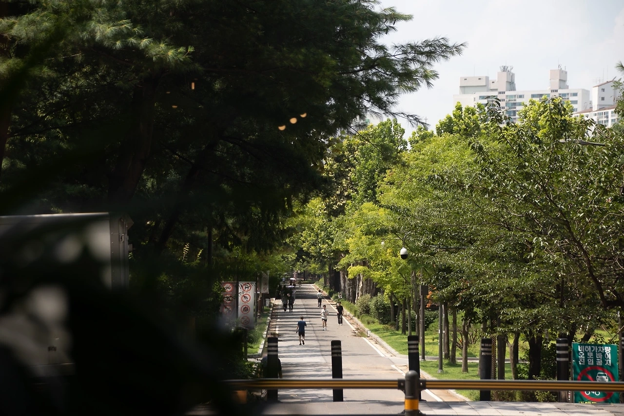 사계절 다 예쁘긴 하지만 여름일 때가 제일 좋아. 사실 나는 여름은 싫어하지만, 초록을 좋아하거든. 아무래도 여름일 때 가장 무성하고 푸르니까. 여기가 벚꽃 명소이기도 하고 단풍 명소이기도 해. 그래서 사람들 사이에서는 봄가을 다 엄청 유명해. 동그란 메인 공터가 있거. 봄이 되면 거기가 다 벚꽃으로 둘려. 가을에는 다 단풍으로 둘리고. 나한테는 그게 익숙해져서 그런지는 모르겠지만 그 모습들에도 불구하고 여름이 좋다. 근데 여름에 공원에 오진 않아. 못 와 너무 더워서. (웃음) 지나가면서 푸른 모습을 보는 게 좋은 거지.