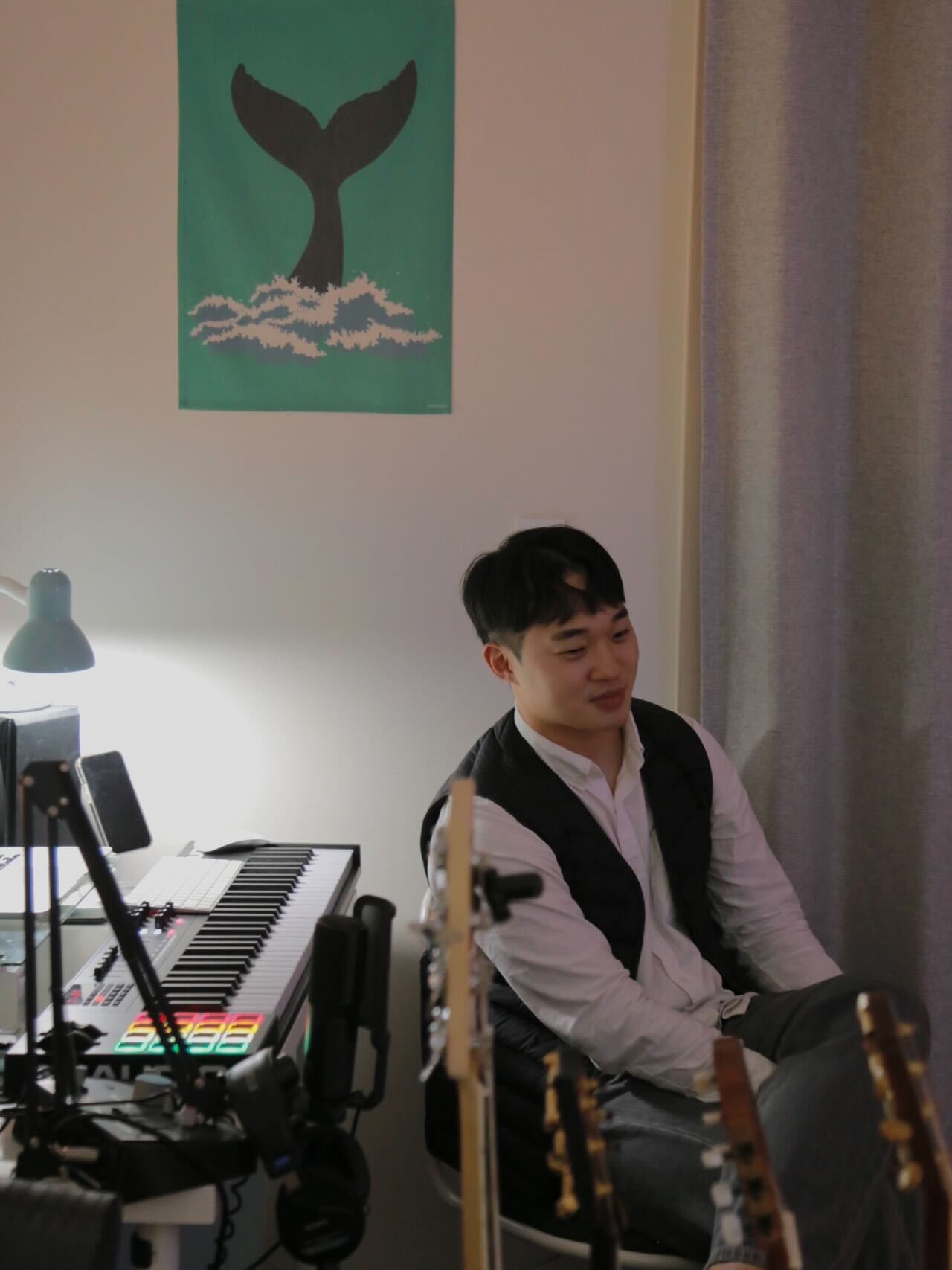 자작곡은 고등학교 1학년 때부터 조금 썼는데 처음에는 능력도 안 되니까 그냥 후렴구만 있는 15초, 20초짜리 노래를 만들었어요. 근데 이걸 고1 때 반 친구들한테 들려주고 페이스북에 올리니까 엄청 좋다고 반응이 너무 뜨거운 거예요. 그래서 나는 이쪽이구나 생각을 했었어요. 그리고 처음으로 풀로 노래를 완성을 시킨 건 제가 어떻게 보면 연애라는 걸 처음 해 본 20살 때였어요. 100일 사귄 여자 친구랑 헤어지고 인생 첫 이별이다 보니 너무 슬픈 거예요. 지금은 솔직히 사귀었다 헤어지면 그렇게까지는 안 힘든데 그때는 진짜 세상이 다 무너진 것처럼 힘들었어요. 그때 처음으로 하나의 곡을 완성을 시켰는데, 비하인드를 말씀드리자면 울면서 만들었어요. 좀 부끄러운 얘기긴 하지만 울면서 기타를 치면 위로가 돼요. 처음으로 울면서 기타 쳐 본 게 중학교 때 시험 망하고 나서였어요. 그냥 기타만 잡고 울면서 흥얼거렸는데 멜로디가 나오고 위로가 되는 거예요. 절대 치유되지 않을 것 같던 마음이 치유되더라고요. 그 뒤로도 뭔가 진짜 힘든 일이 있을 때는 음악으로 노래를 만들어 내는 편이에요.