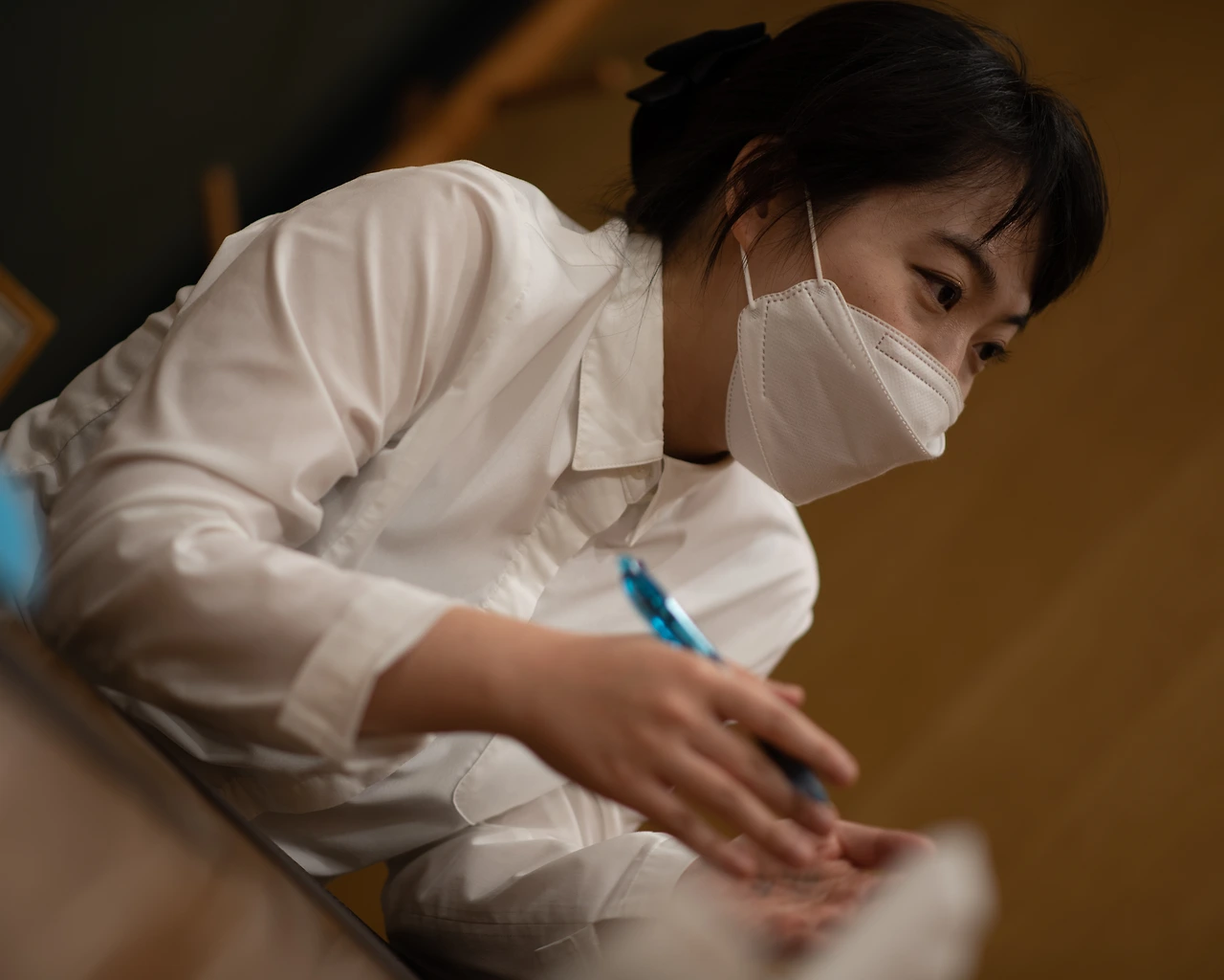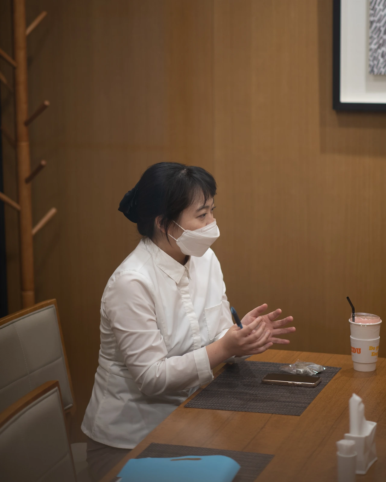 여기 룸에서도 음식이 제공되는데 보통 회의나 중요한 자리를 위해서 식사하시는 분들이 많아요. 근데 보시다시피 룸이 몇 개 없어요. 선착순이기 때문에 전화를 먼저 하셔야 자리를 선정하실 수 있죠. 아무래도 선착순이어서 그런 건지 아니면 업무적인 것 때문인지는 모르겠지만 아주 잠시 화장실을 다녀온 사이 부재중 전화가 열세 통 찍혀 있던 적이 있어요. 손님 분들 입장에서는 룸을 잡는 게 중요한 일정이잖아요. 부재중이 되게 불안하실 수 있다고 생각해요. 그거를 충분히 공감하기 때문에 실수를 안 하려고 굉장히 노력하고 있죠. 웬만하면 이 예약 장부랑 전화기는 한 몸처럼 끼고 다니는 편이에요.