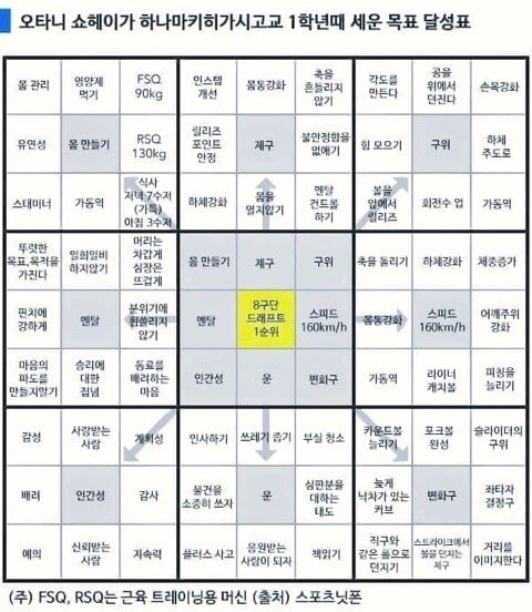 p.s. 고등학생 시절 오타니가만든 목표달성표가 있는데, 지금 봐도 놀랍다. (쓰레기 줍기... 무엇... 그리고 책읽기도 있다...ㅠ 당신같은 분이 책도 많이 읽으면 나는 어떻하라고요요요오오오.)