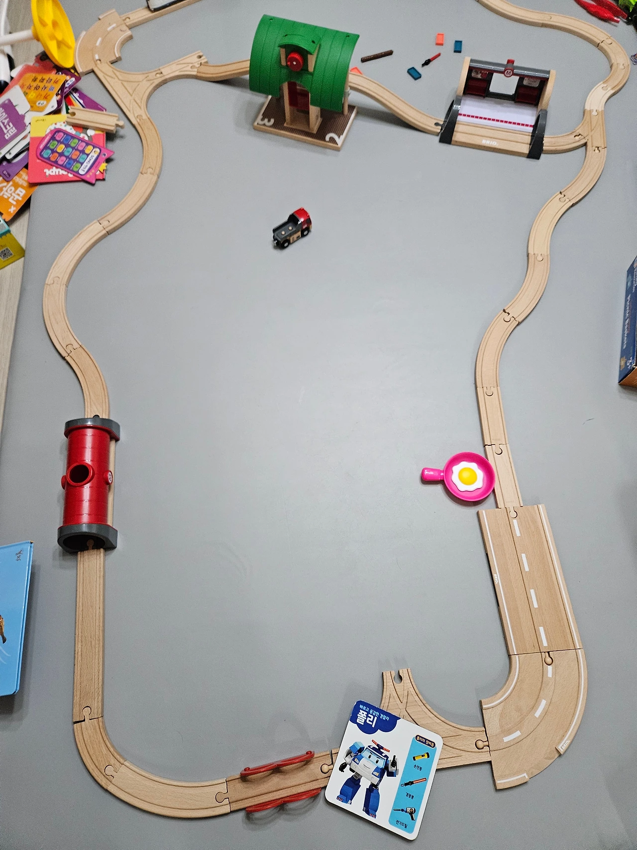 *‘아들36’이 소유한 기찻길 브랜드입니다. 가격이 다소 비싸서 시리즈 중 1개만 소유하고 있습니다. 이케아에서 저렴한 기찻길도 사서 기존 브리오 기찻길과 섞어놨는데, 브리오와 아구가 잘 맞지 않습니다. 그럼에도 억지로 브리오-이케아 조합으로 기찻길을 만들어 다양한 '길'을 표현합니다.