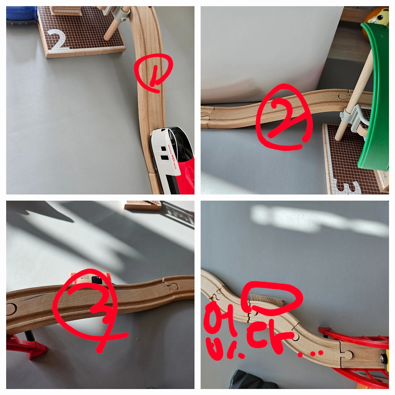 그렇게 기찻길 놀이가 끝이 나고 '아들36'은 지쳤는지 낮잠을 영접하러 방에 들어갔습니다. 한숨 돌린 저는, 기찻길에서 2미터 떨어진 곳에 앉아 잠깐 멍을 때렸습니다. 그런데 이게 무슨 일입니까? 그렇게 찾았던 4번째 커브길이 눈에 들어왔습니다.