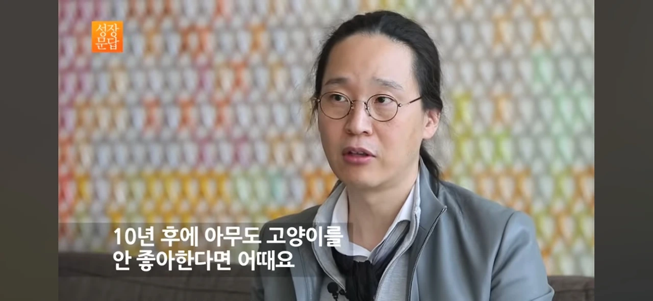제가 좋아하는 동영상이 있는데 9년 전 동영상입니다. 9년 젊은 송길영 작가님께서는 어떤 분야에 전문가가 되려면 좋아하는 분야에 10년을 투자하라고 했습니다. 예를 들어, 고양이를 좋아하면 10년 동안 고양이에 대해 연구하고 탐색하라고 했습니다. 그래서 만약 반려묘 시장이 열리면 '큰 마켓의 수장이 돼' 있을 것이라고 했습니다. 반대로 10년 뒤에 반려묘 시장이 열리지 않는다면요? 송길영 작가님은 이렇게 답했습니다.